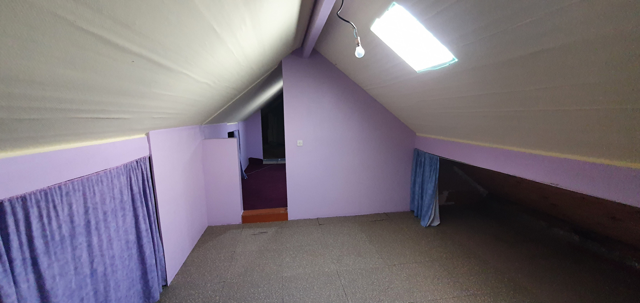 A l'étage, les combles partiellement aménagés totalisent une surface de 108m2 et s'organisent autour de différents espaces. Il est possible de créer 3/4 chambres dans les combles.